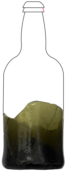 | 4b | brede, cilindrische wijnfles met lange hals en afhangende schouder, halslengte is minder dan de helft van de totale hoogte van de fles, hoog opgestoken bodem met pontilmerk |