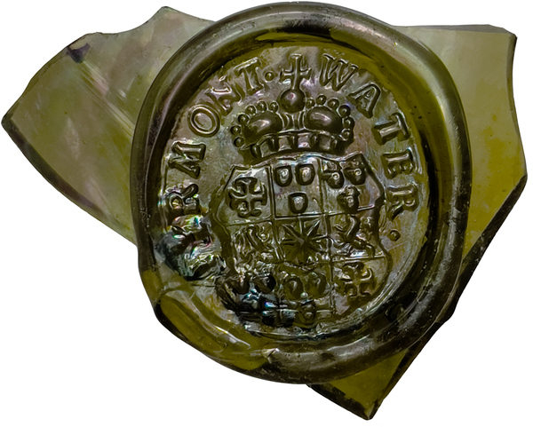 | 5d | glaszegel met heraldisch wapen en opschrift PYRMONT WATER |