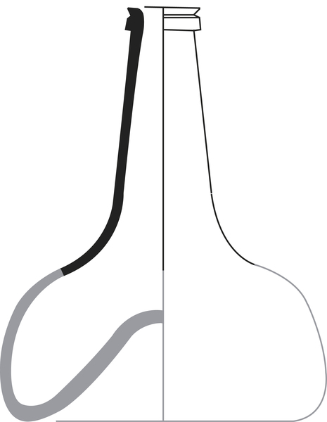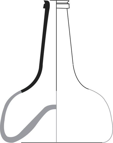 | 4b vorm | bolvormige wijnfles met lange conische hals en uitgezakte buik met grootste breedte aan de basis, conisch opgestoken bodem met pontilmerk |