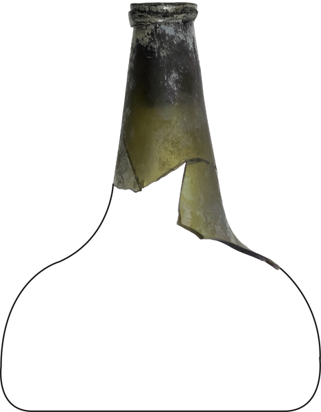 | 4b | bolvormige wijnfles met lange conische hals en uitgezakte buik met grootste breedte aan de basis, conisch opgestoken bodem met pontilmerk |