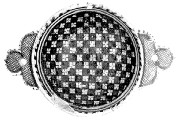 | 5c decoratie | blauw op wit, inwendig: dambordmotief inwendig: blauw |