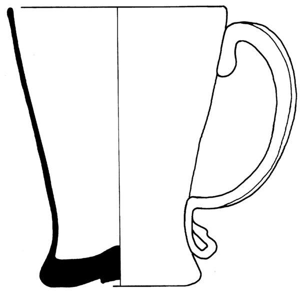 | 4b vorm | dikwandige getailleerde beker, verdikt standvlak met (eventueel weggeslepen) pontilmerk |