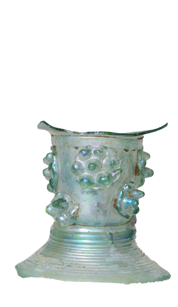 | 4b | roemer met ei- of tonvormige cuppa, geribde draad op de overgang naar de schacht en één of meer verspringende rijen braamnoppen, opgestoken bodem met pontilmerk, gewonden draadvoet |