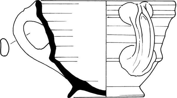 | 4b | kop met scherpe knik bodem-wand en kleine kraagrand met dekselgeul, standring |