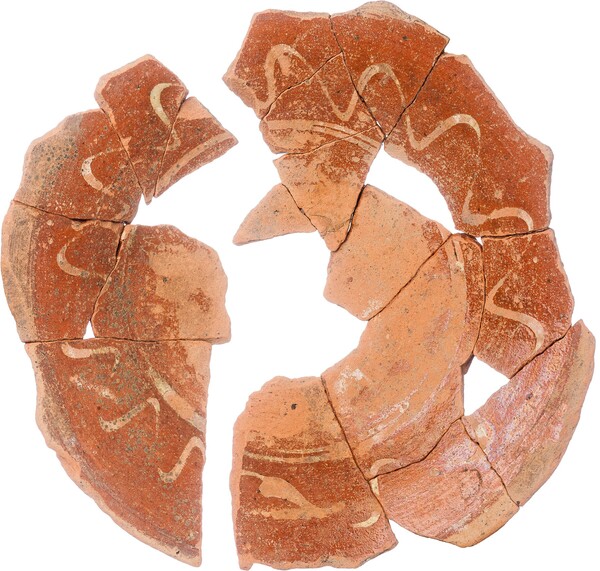 | 5d diversen | erg gesleten/verweerd langs de rand en op de bodem, lijkt op r-bor-51, maar vml. ontbreekt de rand |