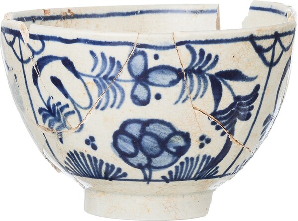 | 5c | blauw beschilderd: Saksisch decor met vakken, bloemen en takjes |