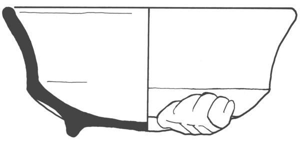 | 4b | steilwandige kom met scherpe knik bodem-wand en (verdikte) ronde rand, lobvoeten |