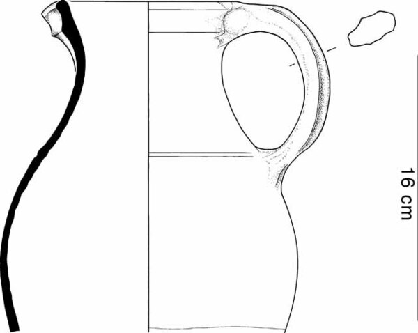 | 4b | hoge kan met S-vormige schouder en hals met licht uitgebogen geribbelde rand, standvlak |