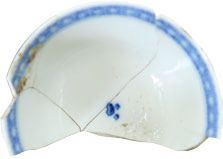 | 5c | uitwendig: blauwe beschildering: Chinese tuin onderglazuur blauw |