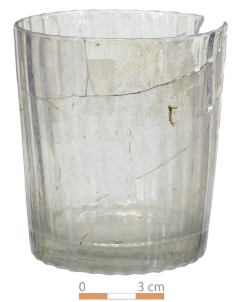 | 4b vorm | dikwandige cilindrische of conische beker met verticaal vlakken- of ribbenpatroon, standvlak of opgestoken bodem |