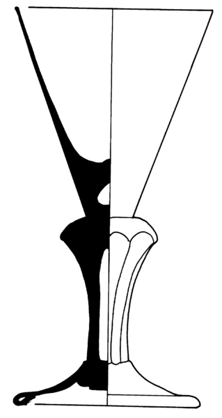 | 4b | trechtervormig kelkglas met dikwandige bodem veelzijdige stam van vijf of meer zijden met luchtbel, ook met diamanten op de schouders, voet met pontilmerk |