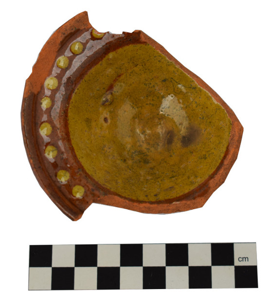 | 5c decoratie | inwendig slibversiering, vlag; slib stippen |