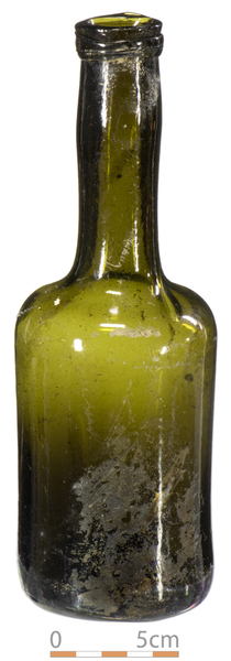 | 4b | korte cilindrische wijnfles met lange, bovenaan iets uitbuigende hals, opgestoken bodem met pontilmerk, halslengte meer dan halve hoogte van de fles (a), halslengte halve hoogte van de fles en rechte vormgeblazen wand (b) |