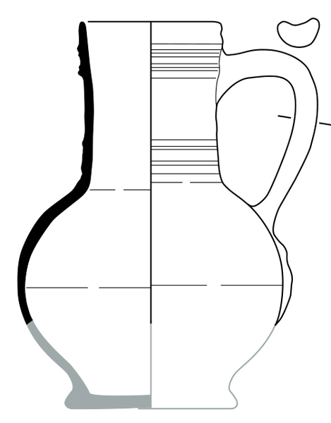 | 4b | kan met kogelronde buik en cilindrische hals met bundels ribbels op de hals, uiteenlopende decoraties, soms tweedeling van de buik, standvoet |