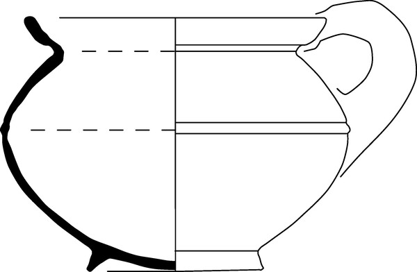 | 5d | ribbel op grens schouder naar bodem, afgeronde kraagrand enigszins gesinterd baksel, binnenzijde beroet |