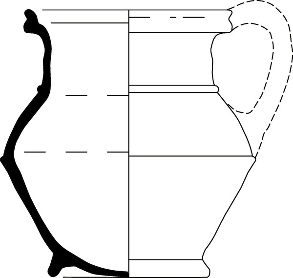 | 4b | kan met afgeronde buikknik, cilindrische hals met ribbel op halsaanzet en kraagrand met dekselgeul, standring |