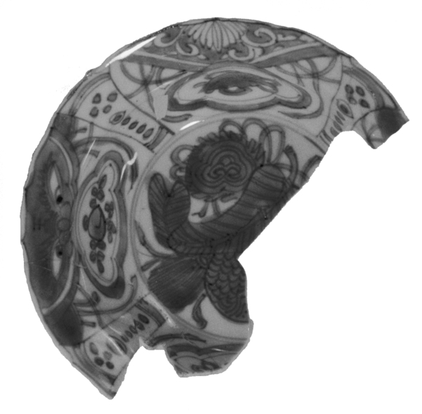 | 5c | vlag: onderglazuur blauw: Kraak-stijl paneel indeling; spiegel: onderglazuur blauw: ruyi, artemisa onderglazuur blauw |