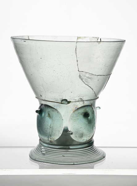 | 4b | roemer met conische cuppa , draad op de overgang naar de schacht en een horizontale rij grote platte noppen of grote platte puntnoppen, opgestoken bodem met pontilmerk, gewonden draadvoet |