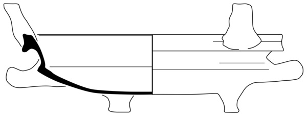 | 4b vorm | komfoor met scherpe knik bodem-wand, manchetrand en nokken op de rand, poten |