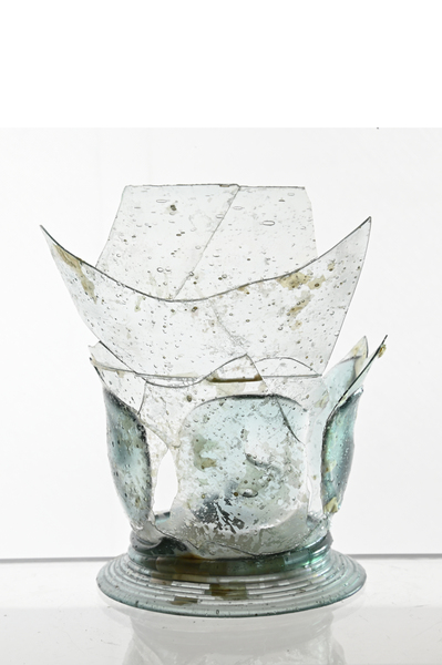 | 4b | roemer met conische cuppa , draad op de overgang naar de schacht en een horizontale rij grote platte noppen of grote platte puntnoppen, opgestoken bodem met pontilmerk, gewonden draadvoet |