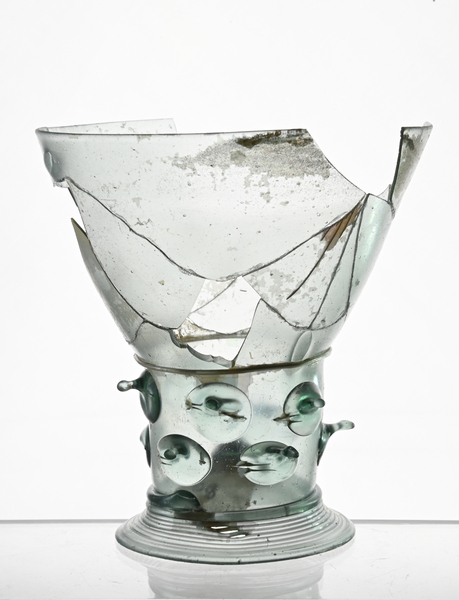 | 4b | roemer met conische cuppa, draad op de overgang naar de schacht en twee of meer verspringende horizontale rijen puntnoppen, opgestoken bodem met pontilmerk, gewonden draadvoet |
