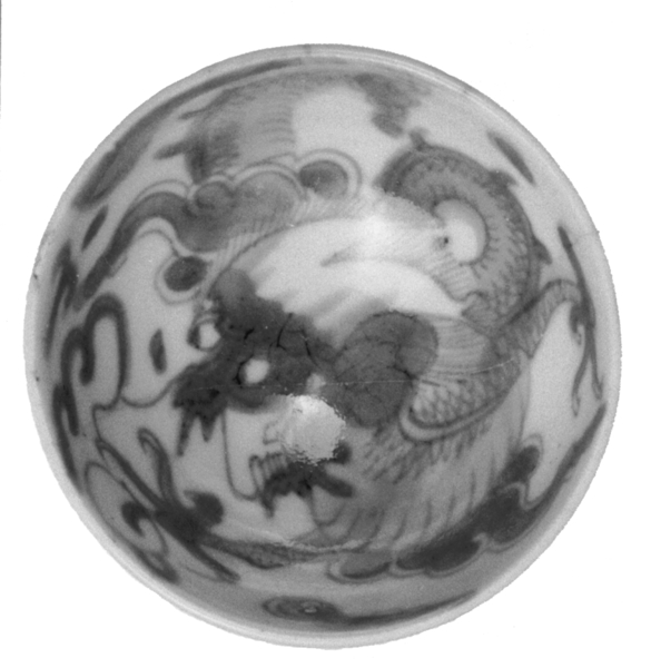| 5c | inwendig: onderglazuur blauw: wolk en vliegende draak jagend op parel; uitwendig: onderglazuur blauw: wolk en vliegende draak jagend op parel onderglazuur blauw |