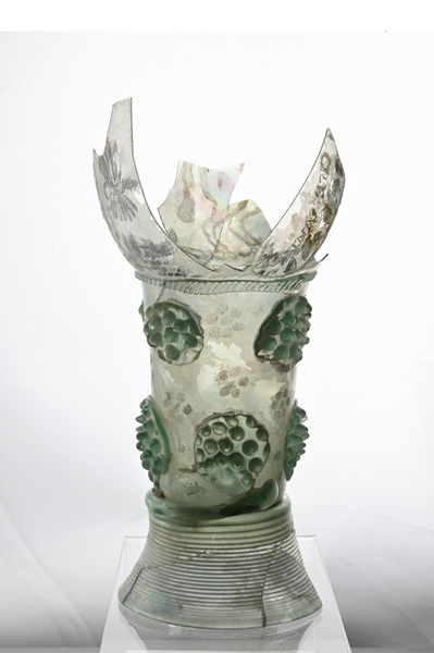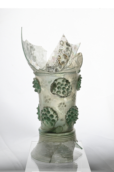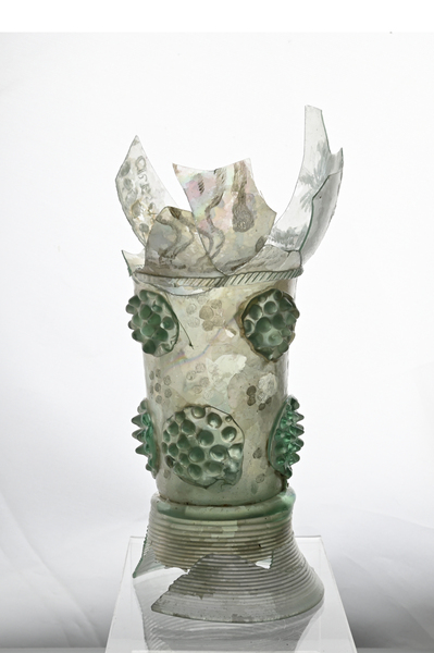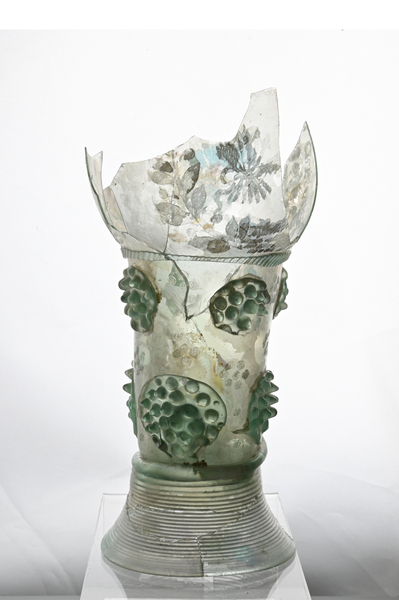 | 4b | roemer met ei- of tonvormige cuppa, geribde draad op de overgang naar de schacht en één of meer verspringende rijen braamnoppen, opgestoken bodem met pontilmerk, gewonden draadvoet |