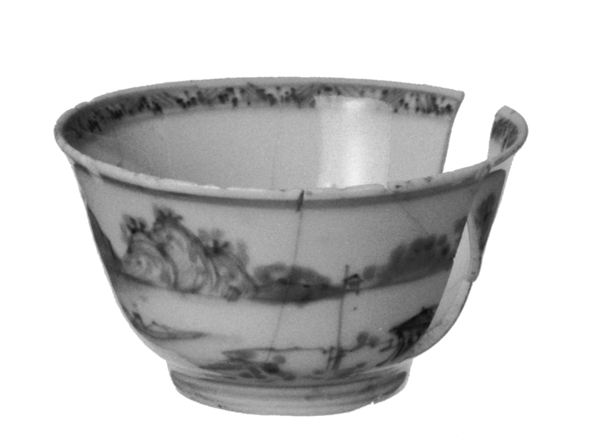| 5c | inwendig: onderglazuur blauw: landschap; uitwendig: onderglazuur blauw: rivier landschap onderglazuur blauw |
