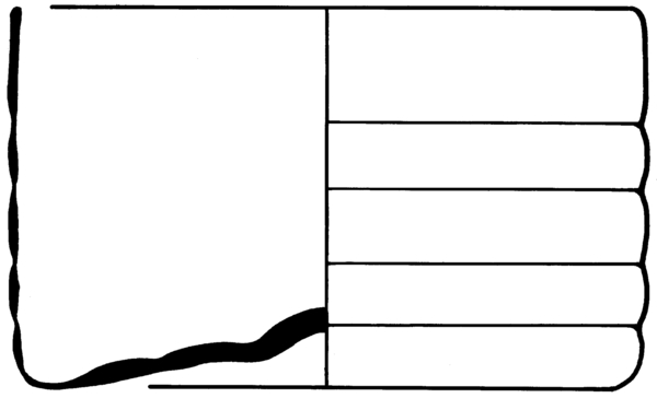 | 4b | cilindrische beker met brede horizontale ribbels, opgestoken bodem met pontilmerk, zonder noppootjes |
