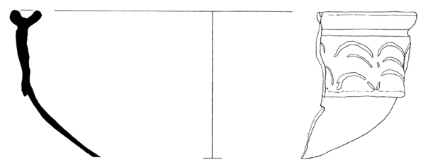 | 5c | uitwendig: slibsikkels, rib overgang wand/bodem inwendig: witte slib; uitwendig: witte slib |