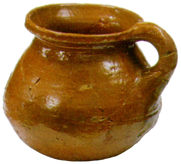 | 4b | pispot met afgeronde buikknik, lage schouder en naar buiten geknikte afgeronde rand met dekselgeul, holle bodem |