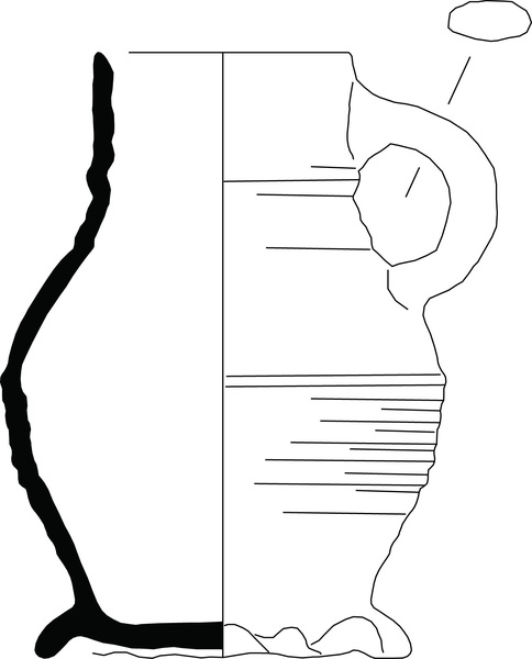 | 4b | biconische kan met buikknik met ribbel, ribbel op halsaanzet en hoge hals, op standring |