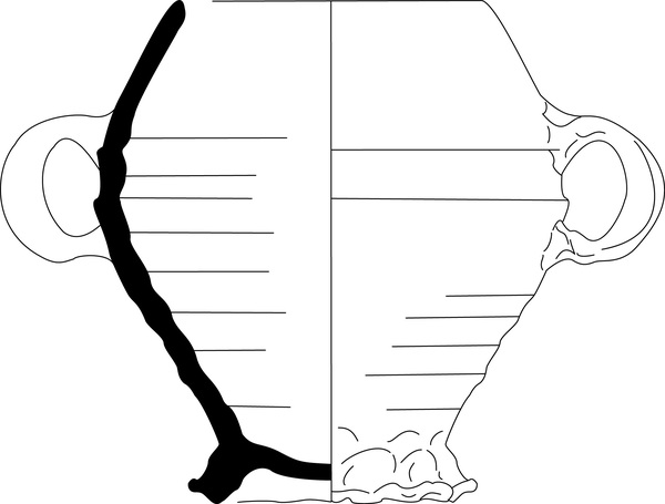| 4b | afgeronde biconische beker met rechte rand, oren op buikknik, standring |