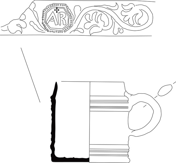 | 5c decoratie | banden, letters: AR en florale motieven; sgraffito blauw |