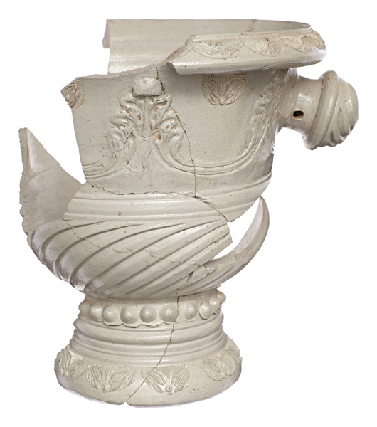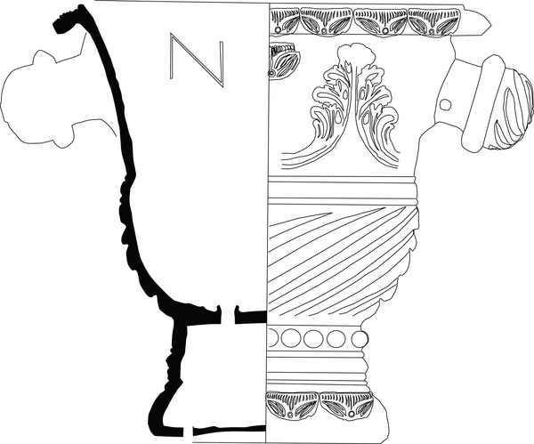 | 4b | klokvormige bloempot met horizontaal geknikte, iets afhangende rand, twee nokvormige oren, hoge standvoet (tuinvaas) |