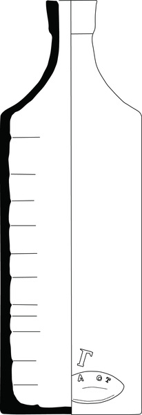 | 4b | cilindrische fles met knik wand-schouder, convexe schouder/hals, manchetrand, standvlak |