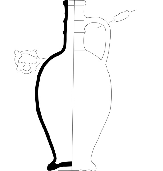 | 4b vorm | P-kruik: zeer bolle fles met hoge hals met ribbels, standring |