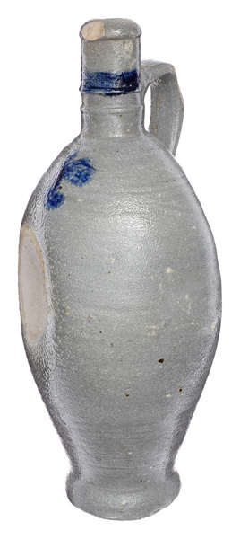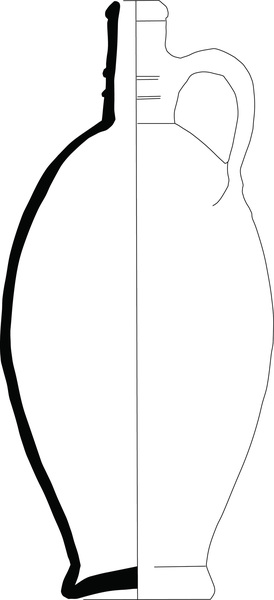 | 4b | P-kruik: iets bolle fles met cilindrische nek en verdikte lip, ribbels op hals, standvoet |