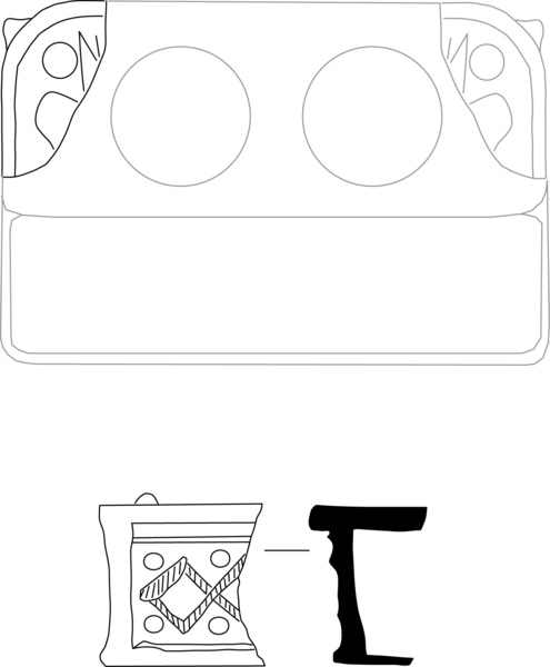 | 4b vorm | rechthoekig inktstel met vooraan ruimte voor inktpen of ganzenveer en achterin een inktpot en een zandstrooier |
