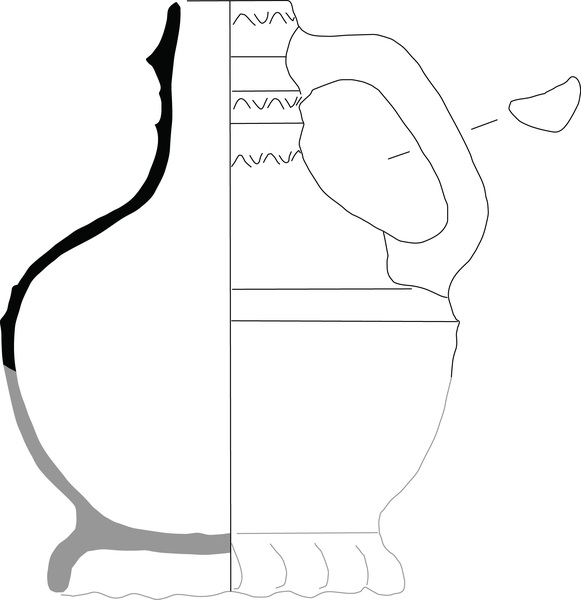 | 4b | bolle kan met afgeronde buikknik, schouder overgaand in hals, ribbels op schouder en hals, kraagrand, standring |