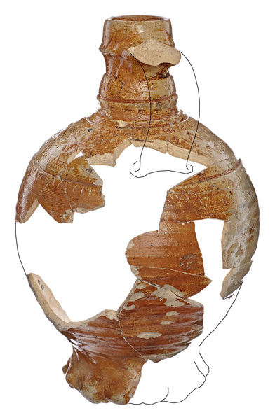 | 4b | kan met hoge schouder, cilindrische hals met ribbels en kraagrand, standring |