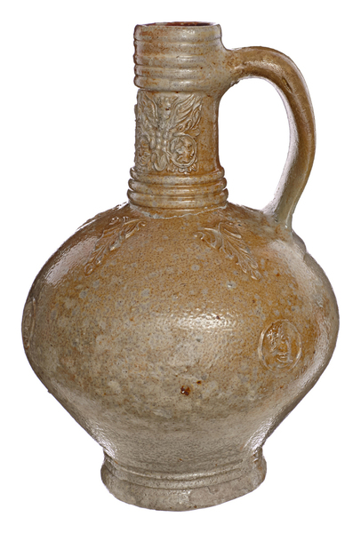 | 4b vorm | rondbuikige kan met hoge cilindrische hals en dubbel verticaal oor, op standvoet |