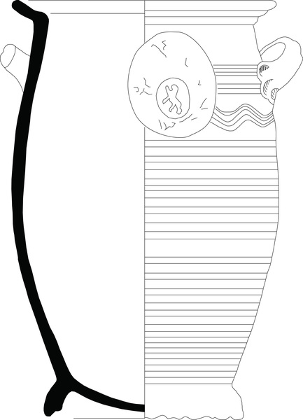 | 4b | hoge, vrijwel cilindrische pot met naar buiten geknikte rand, standring |