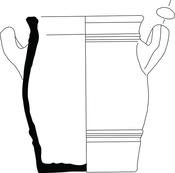 | 4b | hoge tonvormige pot met uitgebogen verdikte en aan de bovenzijde afgeplatte rand, ribbel onder randaanzet, standvlak |
