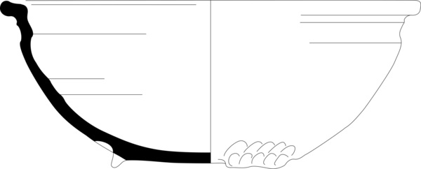 | 4b | diepe bolle kom met ingesnoerde hals en verdikte, naar buiten geknikte rand, lobvoeten |