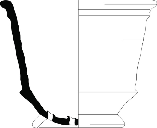 | 4b | conische bloempot met knik en ribbel onderin de zijwand, dikke zwaar geprofileerde kraagrand, standring |