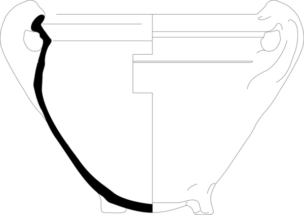 | 4b vorm | grape met hoge schouder en scherpe buikknik, uitstaande rand met verdikte lip, ribbel op randaanzet |