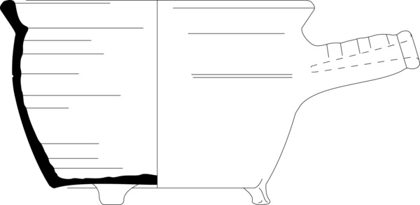 | 4b | wijde afgeronde grape met hoge schouder en uitstaande afgeplatte rand met dekselgeul, vlakke bodem met poten |