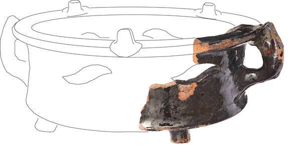 | 4b | komfoor met scherpe knik bodem-wand, naar buiten geknikte rand, uitgesneden luchtgaten en 'poten' op rand, poten |