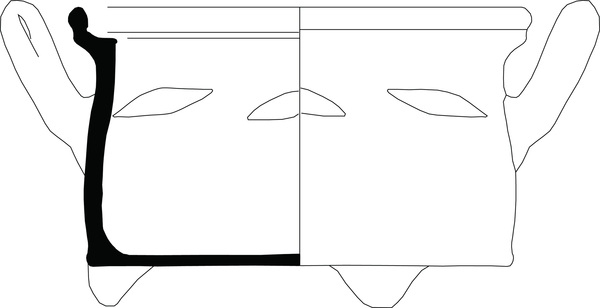 | 4b vorm | wijd komfoor met scherpe knik bodem-wand, kraagrand met dekselgeul, luchtgaten in de wand, poten |